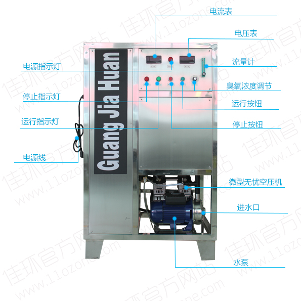 臭氧水量3-8T 型號(hào):YT-016-S-30A 30克臭氧發(fā)生器水機(jī) 專利產(chǎn)品,此產(chǎn)品為廣州佳環(huán)電器科技有限公司獨(dú)家生產(chǎn),請(qǐng)認(rèn)準(zhǔn) 品牌(廣加環(huán)) 水機(jī)產(chǎn)品組成: 30G電源模塊 (1組) 30G脫羥石英管臭氧發(fā)生管 (1根) 空氣分離器分子篩(制氧單元) (1臺(tái)) 6L 微型內(nèi)置式無(wú)油空壓機(jī) (1組) 濾水系統(tǒng) (1組) 內(nèi)置 高密度冷凝器 (1組) 內(nèi)置 電流表 (1個(gè)) 數(shù)顯 電壓表 (1個(gè)) 數(shù)顯 濃度調(diào)節(jié) (1個(gè)) 電源指示燈 (1個(gè)) 停止指示燈 (1個(gè)) 運(yùn)行指示燈 (1個(gè)) 停止按鈕 (1個(gè)) 運(yùn)行按鈕 (1個(gè)) 風(fēng)扇 (2個(gè)) 臭氧水輸出口 (1個(gè)) 1寸 冷卻水進(jìn)口 (1個(gè)) 4分 冷卻水出口 (1個(gè)) 4分 流量計(jì) (1個(gè)) 15L 電源保險(xiǎn) (1個(gè)) 水泵 (1個(gè)) 射流器 (1個(gè)) 1寸 防回水電磁閥 (1個(gè)) 消音器 (1個(gè)) 內(nèi)置 產(chǎn)品特點(diǎn): 1、 水冷風(fēng)冷雙冷設(shè)計(jì) 水冷冷卻臭氧發(fā)生管 風(fēng)冷冷卻機(jī)器內(nèi)溫度冷卻水0.2-0.3T/H 2、 外殼為不銹鋼 3、 利用氧氣為氣源,經(jīng)過(guò)干燥過(guò)濾器,臭氧濃度提高 4、 臭氧量可調(diào)節(jié) 5、 氧氣純度:≥93% 6、 臭氧水濃度 1-2.5PPM (一般達(dá)到0.3-0.4ppm就達(dá)到消毒殺菌效果) 設(shè)備其他參數(shù) 整臺(tái)機(jī)尺寸:830*550*1420mm臭氧產(chǎn)量:30G/H 制氧機(jī):6L/min 輸入電壓:220V(50HZ) 重 量:≤85KG 規(guī) 格:箱式 混合方式:DN25(1寸) 射流器 PVDF材質(zhì) 增壓水泵:1.1KW 為了使用方便使用 220V/50HZ電源 馬力1.5HP 水流量 5T/H 揚(yáng)程30米 接入冷卻水口 4分水管 臭氧水輸出口 DN25 1寸 整臺(tái)臭氧水機(jī) 功 率:約 2650W 售后服務(wù):設(shè)備保修壹年,終身維護(hù),設(shè)備如出現(xiàn)故障,購(gòu)方需要說(shuō)明設(shè)備情況,廠方當(dāng)日回應(yīng) 關(guān)于物流