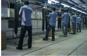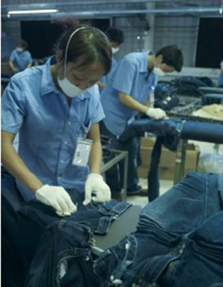 三:臭氧氧化與傳統(tǒng)方法的優(yōu)缺點(diǎn)比較 1. 用次氯酸鈉(婆梅度為18度)經(jīng)濟(jì);不好控制,有傷布的纖維。健康危害:經(jīng)常用手接觸本品的工人,手掌大量出汗,指甲變薄,毛發(fā)脫落。本品有致敏作用。本品放出的氯氣有可能引起中毒。具腐蝕性,可致人體灼傷,具致敏性。 2. 用亞氯酸鈉和硫酸在加次氯酸鈉。價(jià)格比上一種高點(diǎn)。但比上一種好點(diǎn)。不傷布的纖維。亞氯酸鈉有強(qiáng)氧化性。在175℃時(shí)即分解而發(fā)熱,與可燃物質(zhì)接觸,即起猛烈爆炸,須注意安全。硫酸對(duì)環(huán)境有危害,對(duì)水體和土壤可造成酸性污染。具強(qiáng)腐蝕性、強(qiáng)刺激性,可致人體灼傷。 3. 高錳酸鉀、過(guò)醋酸和還原漂白方式 關(guān)于牛仔布漂白,除了用次氯酸鈉和亞氯酸鈉外,還可以用高錳酸鉀、過(guò)醋酸和還原漂白方式,具體需要根據(jù)牛仔布所用染料類型來(lái)選擇,傳統(tǒng)牛仔為還原淀籃染料,也有用硫化染料或直接染料代替,也有采用活性染料代替的,故此,需要根據(jù)具體情況考慮。 4. 臭氧氧化的優(yōu)點(diǎn) a) 無(wú)污染,臭氧為純凈物。在常溫下,易分解,生成氧氣和氧原子 b) 臭氧的氧化能力極強(qiáng)。 c) 運(yùn)行成本低 四:手工處理 1.手擦 a) 在洗水前,通過(guò)使用砂輪滾動(dòng)摩擦而使布面染料褪色,手擦的地方通常是脾位和臀位,人為的機(jī)械褪色,讓牛褲在洗水后顯得自然地懷舊和泛白 b) 噴沙和手擦效果接近,但對(duì)布紋的效果有差別。噴沙后布紋模糊,沉底,而手擦后布紋清晰凸顯